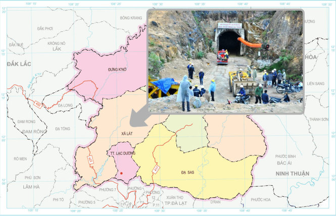 Như tin tức đã đưa, vào khoảng 7 giờ sáng 16/12, tại công trình thi công đập thủy điện Đạ Dâng - Đa Chomo, thuộc thôn Păng Tiêng, xã Lát, huyện Lạc Dương, tỉnh Lâm Đồng đã xảy ra sự cố sập đường hầm dẫn nước khiến 12 người mắc kẹt. Ngay khi sự cố xảy ra, ông Đoàn Văn Việt, Chủ tịch UBND tỉnh Lâm Đồng đã có mặt tại hiện trường, trực tiếp chỉ đạo các cơ quan chức năng triển khai các phương án cứu nạn.