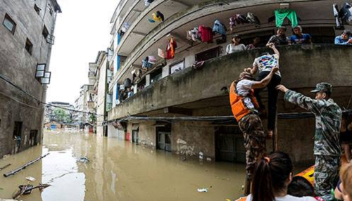 Nhân viên cứu hộ đưa người dân lên thuyền thoát khỏi vùng lũ tại Quế Lâm, Quảng Tây, Trung Quốc vào ngày 2/7 - Ảnh: Reuters. |