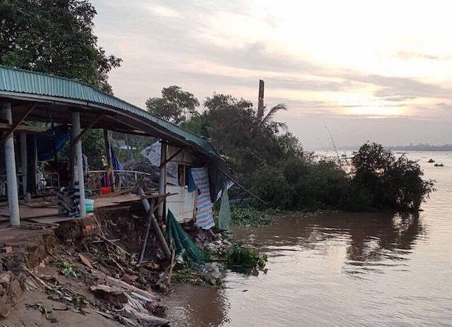 | Đoạn đê bao cồn Phú Đa, xã Vĩnh Bình, huyện Chợ Lách vừa bị sạt lở - Ảnh: VOV |