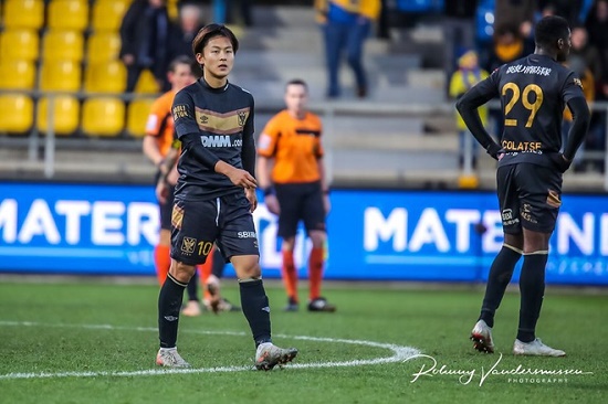Lee Seung-woo lần đầu ra sân tại Bỉ. |