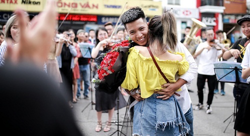 Một số hình ảnh về buổi cầu hôn bất ngờ trên phố đi bộ Hà Nội.