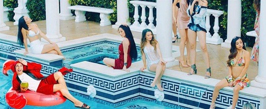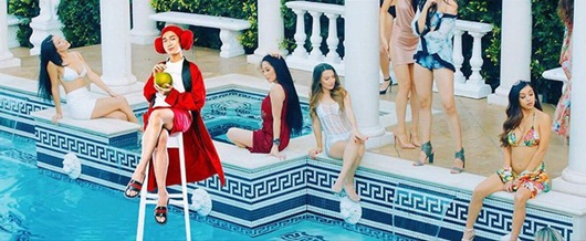 Trước đó, BB Trần cũng "gây bão" khi diện đồ ngủ ngồi uống nước dừa sang chảnh giữa hồ bơi trong MV Sơn Tùng. |