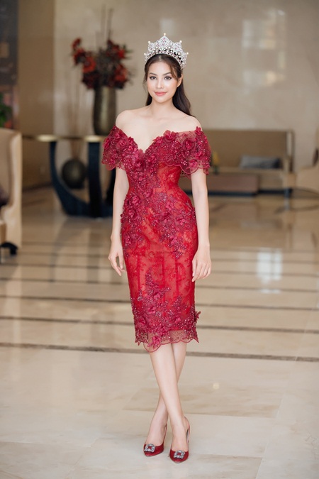 Diện bộ đầm đỏ bắt mắt, Phạm Hương khoe tối đa vóc dáng xinh đẹp và đầy quyến rũ, quyền lực của một đương kim Hoa hậu. |