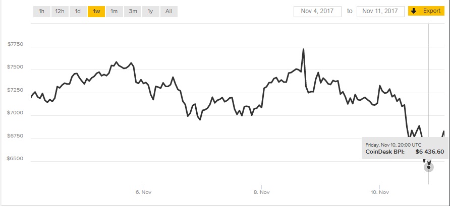 Giá Bitcoin đã có sự sụt giảm đáng kể khi chạm mức 6.436 USD. Đây là mức giá thấp nhất trong vòng một tuần trở lại đây.