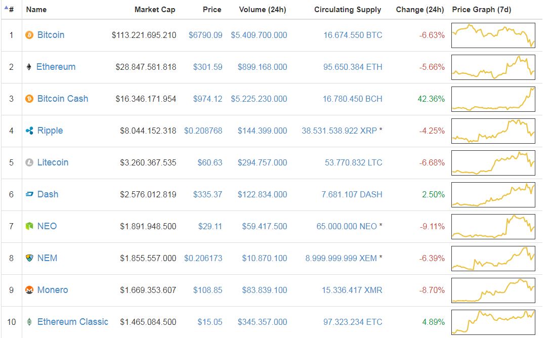 Theo cập nhật mới nhất từ Coinmarketcap, giá đồng Bitcoin hiện tương đương với 6.700 USD, giảm 6,63% trong vòng 24 giờ qua. Vốn hóa thị trường của đồng tiền ảo này là hơn 113,2 tỷ USD.