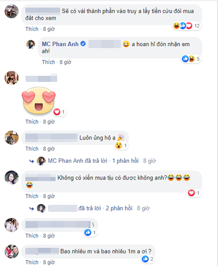 Ngay sau khi đăng bài rao bán đất chính chủ trên trang cá nhân, MC Phan Anh nhận được rất nhiều sự quan tâm. một người bạn của nam MC cảnh báo: "Sẽ có vài thành phần vào truy anh lấy tiền cứu đói mua đất cho xem". Trước vấn đề này, Phan Anh không tỏ ra bực tức, mà nhẹ nhàng đáp lại "Anh hoan hỉ đón nhận em à".