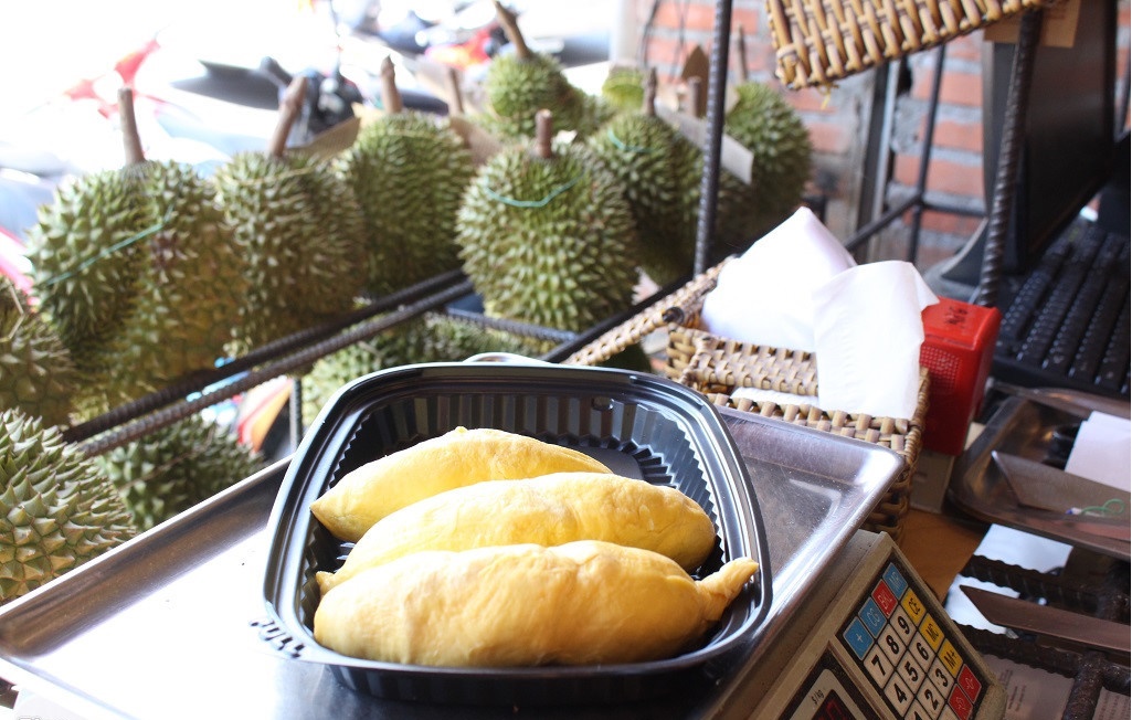 Người mua phải trả tiền gấp 2 lần để mua sầu riêng Ri 6, những trái sầu riêng này được chủ cửa hàng cam kết sầu riêng chín tự nhiên, bao ăn nên khách không được mang nguyên trái về để tránh rủi ro.