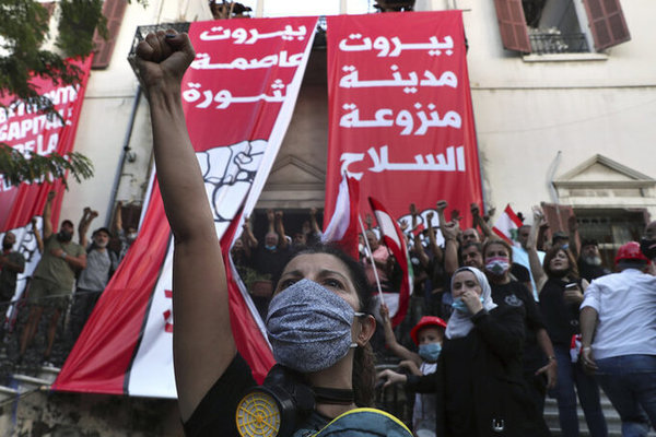 Ngày 8/8, 4 ngày sau vụ nổ lớn tại thủ đô Beirut làm ít nhất 158 người thiệt mạng, hơn 6.000 người bị thương và 300.000 người mất nhà, có khoảng 10.000 người biểu tình tụ tập tại Quảng trường Martyr.