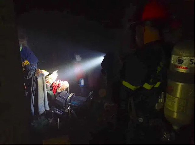 Người dân và lực lượng chức năng cũng đồng thời phá cửa, đưa ông N.Q.K. (SN 1959) mắc kẹt bên trong ra ngoài.