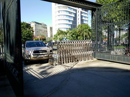 Chiếc xe ô tô tông vào rào chắn UBND tỉnh Thanh Hóa. |