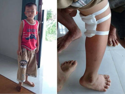 Bé Lê Nguyễn Quốc Hào và vết mổ ở chân phải - Ảnh: Báo Nhân Dân |