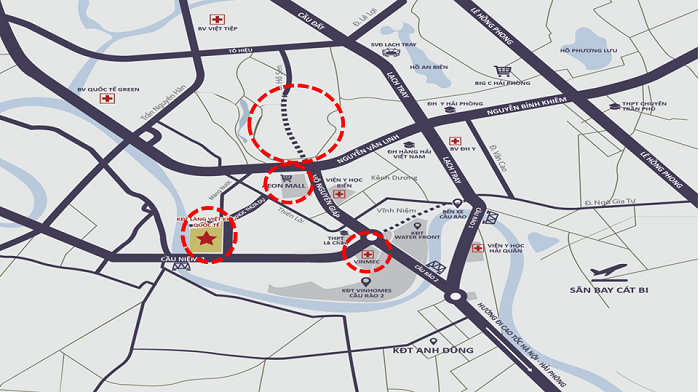 | Làng Việt Kiều Quốc tế có vị trí đắc địa tại phường Vĩnh Niệm, quân Lê Chân, thành phố Hải Phòng. |
