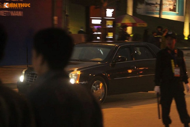 Chiếc xe Cadillac One mang biệt danh "Quái thú" cũng lăn bánh rời khách sạn Marriott. Ảnh: Kiến Thức |