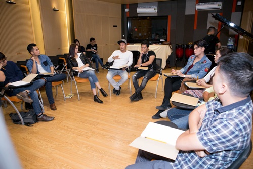 Team Đức Trí chuẩn bị cho phần thi sắp tới tại Sing My Song. |
