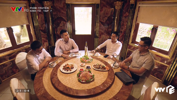 Giữa tâm bão, Vũ (Việt Anh), Bạt (Chí Nhân) và các thanh niên có chức có quyền lại ăn chơi, tiệc tùng. Ảnh: VTV. |