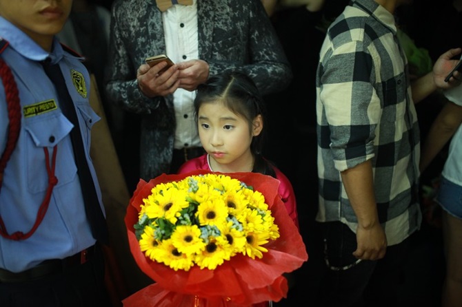 Bé Yu Uyên Nhi mang hoa đến tặng cô Siu Black, chúc mừng thành công show diễn hoành tráng của cô. |