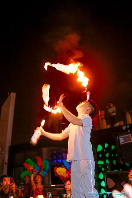 Đầu tiên, phải kể tới sự xuất hiện ấn tượng của Violinist FatB- phù thủy vĩ cầm nhạc điện tử, với sự kết hợp ăn ý cùng DJ với những bản top hit đang làm điên đảo thị trường âm nhạc Việt. Hay những màn nhảy cực lôi cuốn và mạnh mẽ của nhóm nhảy Dreamboys. Thêm những màn trình diễn nóng bỏng của các vũ công xinh đẹp tại SKY36, du khách sẽ có trọn vẹn những phút giây bùng nổ.
