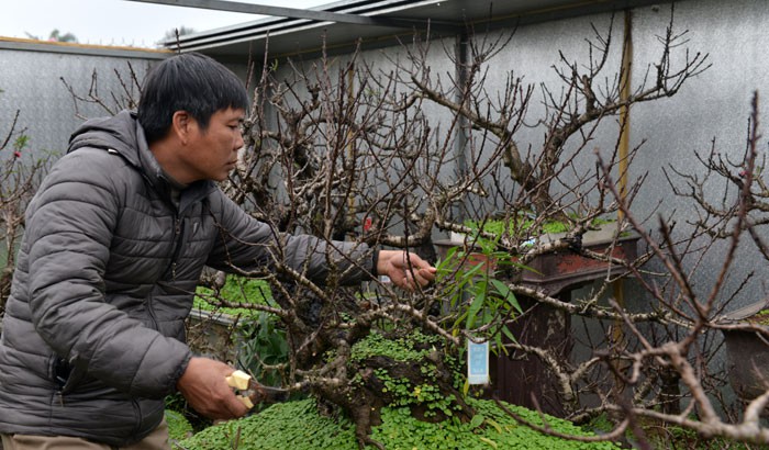 Chỉ vào gốc đào Thất Thốn phai kép 5 năm tuổi của mình đang có khá nhiều nụ, anh Trung nói: “Cây này 5 năm tuổi, tôi mua chúng từ lúc 1 tuổi với giá 4 triệu đồng về chăm và chờ 2 năm sau mới được ngắm bông hoa đầu tiên”. Loại này rất đặc biệt, cây càng lâu năm hoa càng sai, tỷ lệ đậu quả cũng cao, khác hoàn toàn với đào thất thốn kém là hoa tàn rồi rụng, anh Trung cho hay.