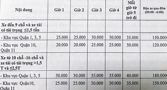 Theo đề án mới của Sở GTVT TP. HCM, mức phí đỗ xe cao nhất là 40.000 đồng/h, qua đêm lên đến 180.000 đồng. Mức phí này tương đương với giá giữ xe ở nội thành Hà Nội.