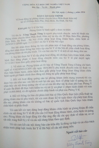 | Báo cáo giải trình của bác sỹ Uông Thanh Tùng. |