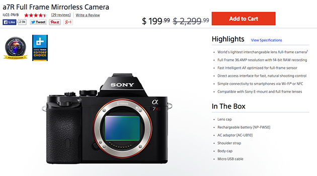 Mẫu máy ảnh Sony Alpha A7R bất ngờ được giảm giá một cách không tưởng trên gian hàng online của Sony tại khu vực Mỹ. Ngoài ra còn một vài mẫu máy ảnh và ống kính khác được giảm giá mạnh, khiến nhiều người tỏ ra nghi ngờ.