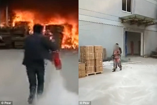 Công ty sản xuất cà phê Hookah, tại Ningbo, tỉnh Chiết Giang (Trung Quốc) bị cháy trong suốt hai giờ đồng hồ mới được dập tắt. Trong khi mọi người chạy hết ra ngoài quan sát thì một người toàn thân cháy rừng rực như quả cầu lửa từ trong đám cháy lao ra ngoài.