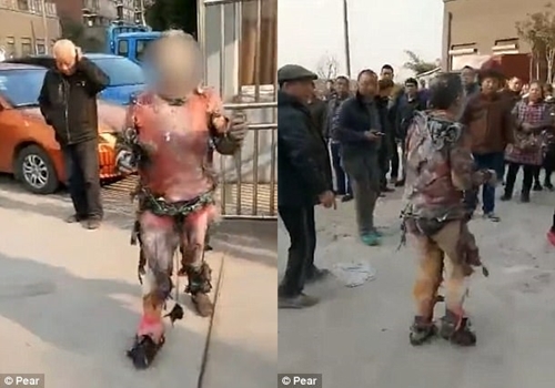 Mọi người vội vàng chạy tới giúp dập tắt lửa cứu anh ta và gọi xe cứu thương. Sau khi lửa tắt, nạn nhân vẫn đi lại với bộ quần áo bị cháy loang lổ trên người.