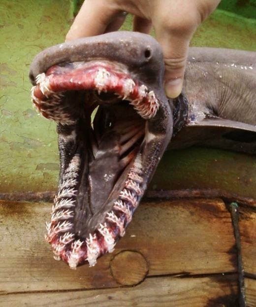 Trong hình là cá mập thằn lằn, nổi bật với cơ thể đầu rắn, mình lươn quái dị. Đặc biệt, chú cá này còn có “hàm răng thần chết” cực kì dữ tợn. Theo các nhà sinh vật biển, con cá có cấu tạo cơ thể dạng này là để thích nghi với môi trường sống ở độ sâu 1.500 mét. |