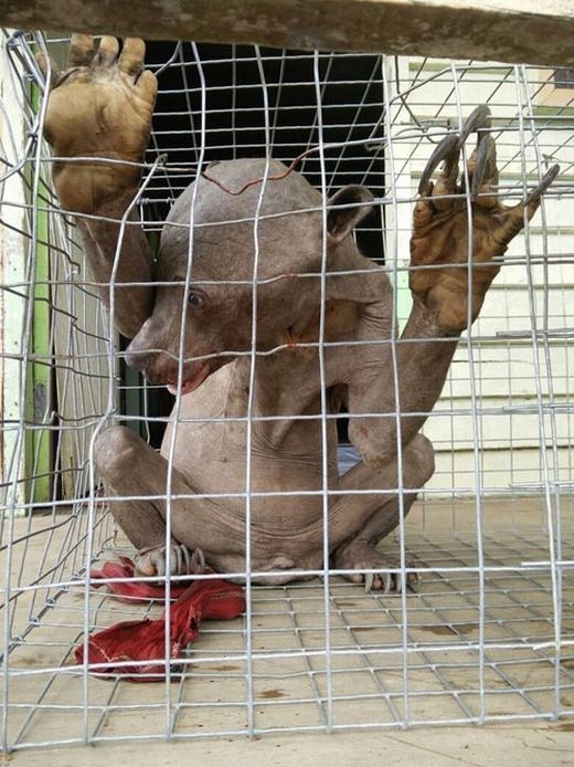 Được biết, con gấu chó này đã mắc phải một chứng bệnh hiếm gặp khiến lông gần như rụng hết. Các nhà bảo vệ động vật tìm được chú trong tình trạng kiệt sức, ốm yếu, rất sợ người và dễ bị kích động. Hiện chú gấu chó này đang được chăm sóc và điều trị tại một trung tâm bảo vệ động vật hoang dã. |