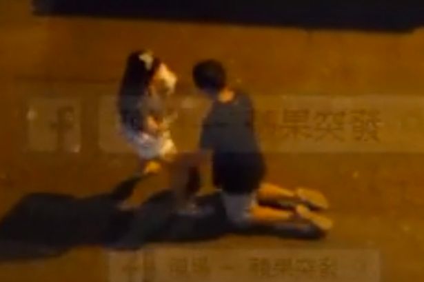 Trong đoạn video, chàng trai được nhìn thấy quỳ trước cô gái và khóc. Phương tiện truyền thông địa phương nói rằng anh chàng đã năn nỉ cô gái đừng chia tay. Tuy nhiên cô gái đã có những cách phản ứng khác biệt.