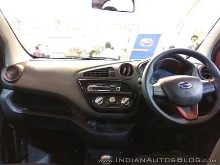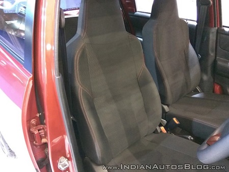 Các ghế ngồi của xe cũng chỉ được bọc nỉ và vải, thay vì giả da hay da thật. Bản thân từng ghế ngồi cũng chỉ có thể điều chỉnh cơ. Tuy nhiên, nhờ có độ dài trục cơ sở lớn hơn Renault Kwid nên Redi-Go có không gian nội thất khá thoải mái. |