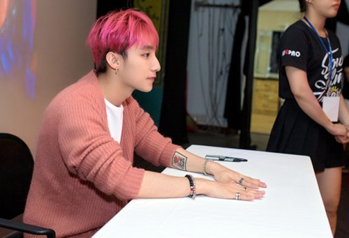 Chiều qua (21/11), Sơn Tùng thu hút rất nhiều sự chú ý khi xuất hiện với mái tóc hồng khác lạ tại buổi họp fan thân mật.
