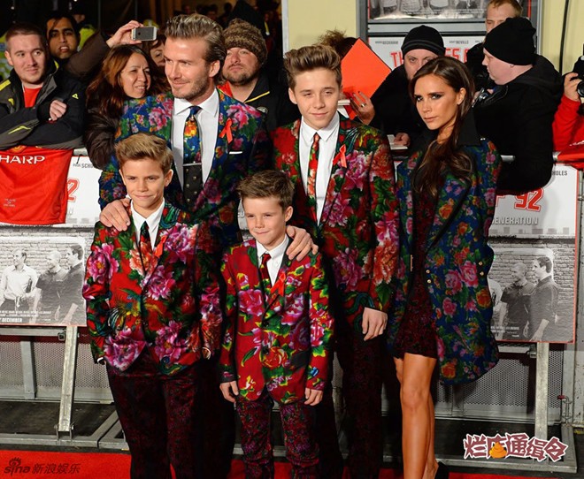 Gia đình Becks trong "đồng phục chăn con công". |