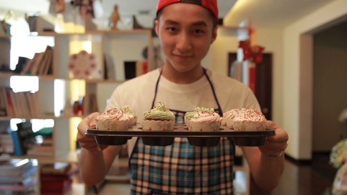 Tùng đã tự tay làm bánh tặng cho người bạn đặc biệt. Hình ảnh anh chàng túng lúng chuẩn bị thực sự khiến cho nhiều cô gái phải cảm động.