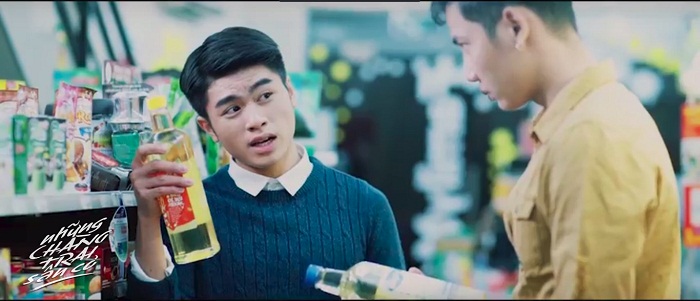 Tiếp tục quay lại với tình tiết truyện phim, khi Đức Chinh vào trong một cửa hàng và tình cờ nghe được câu chuyện nói đùa của 2 sinh viên nữ cùng trường về một Tiến Dũng đẹp trai, khó tính và có vẻ không thích con gái! Và thế là Đức Chinh từ đó cố tình tạo ra một mối quan hệ mờ ám giữa mình và Tiến Dũng, khiến đàn anh lạnh lùng của mình tỏ ra ghét cay ghét đắng. “Tối hôm qua, anh đâm tôi quá trời. Tôi không ngờ anh không những là một thủ môn giỏi mà diễn xuất cũng giỏi quá ha”, câu nói cố tình để mọi người trong cửa hàng nghe của Đức Chinh làm Tiến Dũng có vẻ tức điên.