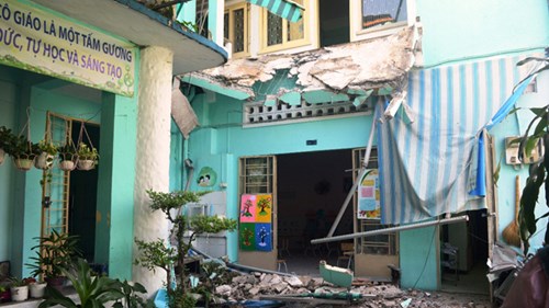 T??ng r�o v� lan can tr??ng m?m non b? ?� s?p. ?nh: B�o Ti?n phong. |