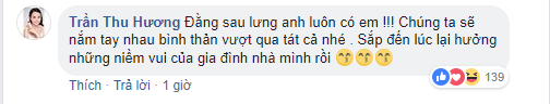 Ngay sau khi đăng tải hình ảnh, Tuấn Hưng lập tức nhận được vô số lời động viên đến từ đồng nghiệp và người hâm mộ. Đặc biệt nhất, bà xã Thu Hương đã để lại bình luận vô cùng ngọt ngào gửi đến chồng: "Đằng sau anh luôn có em! Chúng ta sẽ nắm tay nhau bình thản vượt qua tất cả nhé. Sắp đến lúc lại hưởng những niềm vui của gia đình nhà mình rồi".