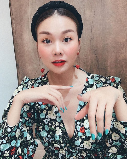 Chiếc băng đô nhung đỏ cùng màu với son môi có lẽ là phụ kiện đáng chú ý nhất, trở thành điểm nhấn trong bộ trang phục khá đơn giản của Thanh Hằng. |