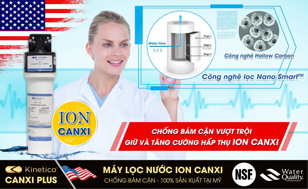 Máy lọc nước Kinetico canxi Plus sản xuất và nhập khẩu 100% tại Mỹ sử dụng công nghệ độc quyền Nano Smart TM , Hollow Carbon của tập đoàn Kinetico, bộ lọc 100% được sản xuất tại Hoa Kỳ.