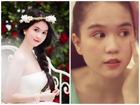 Ngoài đời, gương mặt của Ngọc Trinh nhìn nặng nề và bầu bĩnh chứ không thon gọn và thanh thoát như sau khi đã chỉnh sửa. |