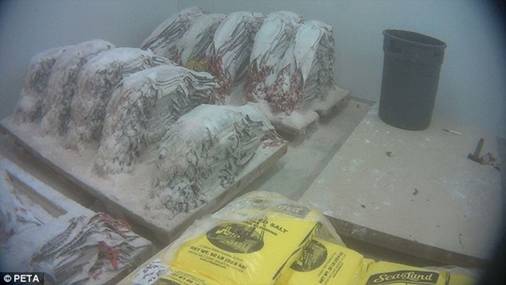 Những tấm da sau khi lột sẽ được bảo quản trong phòng lạnh trước khi được chuyển đến những cơ sở xử lý da. |