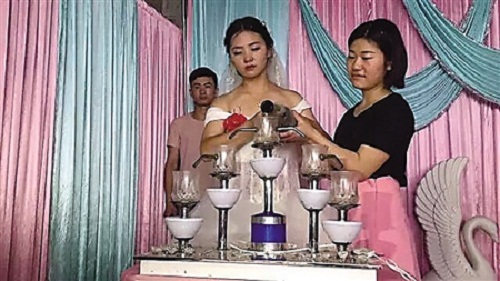 | Vắng bóng chú rể, cô dâu thực hiện các nghi thức lễ cưới với em chồng |