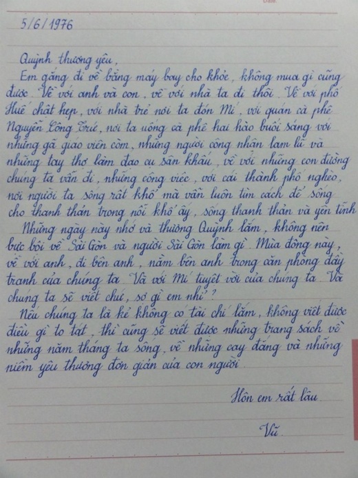 Ngày 11/5, một trang fanpage đăng tải bức thư của nhà thơ Lưu Quang Vũ gửi cho vợ là nữ thi sĩ Xuân Quỳnh. Bức thư tình lãng mạn với dòng chữ mực xanh ngay ngắn ngay lập tức gây sốt trên mạng xã hội.