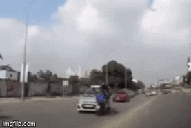 Vụ va chạm khiến chiếc xe máy ngã đổ ra đường, cô gái ngồi sau tỏ vẻ đau đớn còn chú chó trên xe máy cũng hoảng sợ chạy mất.
