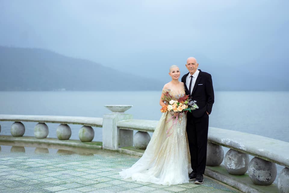 Chia sẻ với chúng tôi, cô dâu Lê Mai Dạ Thảo (36 tuổi) cho biết đây là bức ảnh cưới mà chị và chồng Robert John Davis (72 tuổi) chụp để làm kỷ niệm. Chị cho biết, chồng chị quốc tịch Mỹ và hiện tại hai vợ chồng đang sống tại Nha Trang. Vì đặc biệt yêu thích môi trường ở Việt Nam nên khi về hưu anh đã lựa chọn nơi đây là nơi sinh sống. Mối cơ duyên của anh chị bắt nguồn từ những cuộc trò chuyện trên một app mạng xã hội.
