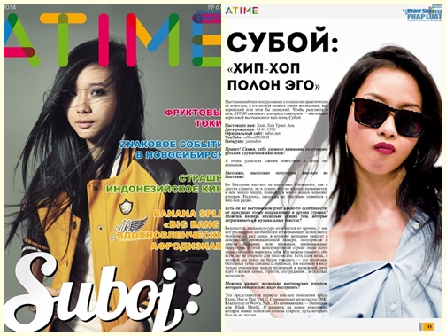 Suboi trên trang bìa và trả lời phỏng vấn tạp chí AT TIME của Nga số tháng 7/2014. |