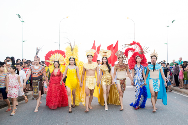 Chiều tối qua (26/4), carnaval đường phố tại TP Đồng Hới (Quảng Bình) chào mừng tuần lễ Văn hoá du lịch Đồng Hới đã diễn ra tưng bừng, náo nức với sự hội tụ của dàn siêu mẫu đẹp lộng lẫy khiến người dân vô cùng phấn khích. Trong hơn 1h đồng hồ, các người mẫu cùng với hàng ngàn diễn viên quần chúng trong nhiều bộ đồ lộng lẫy sặc sỡ đã diễu hành qua nhiều tuyến phố, ở những tuyến phố chính, các đội múa dừng lại để thể hiện các bài múa chào mừng tuần lễ du lịch vô cùng sôi động, bắt mắt.