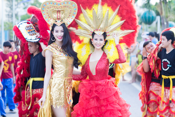 Sánh bước bên Hoa hậu quý bà là vẻ đẹp quyền uy mà vô cùng gợi cảm của Á hậu Phạm Hương, từng bước dài của Phạm Hương cùng các siêu mẫu khiến người dân hai bên đường… ngất ngây. Rất hiếm khi họ được thấy các người đẹp, siêu mẫu lộng lẫy đến thế ngay sát bên cạnh mình. Hàng trăm cô gái xinh đẹp của Đồng Hới cũng đã cùng diễu hành trong những bộ đồ bắt mắt, vô cùng quyến rũ.