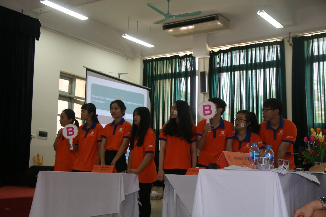 Các đội thi so tài trong phần thi Kiến thức xã hội. |