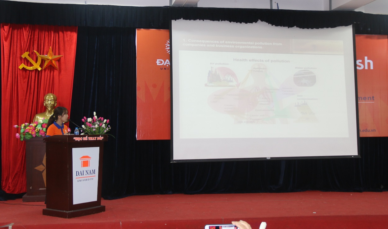 Chia sẻ về chủ đề “Let’s go green”của cuộc thi, TS. Đặng Ngọc Hướng – Trưởng khoa Ngoại ngữ cho biết: “Ô nhiễm môi trường đang là vấn đề nóng trên toàn cầu. Trong thời gian qua, Trường ĐH Đại Nam đã tổ chức rất nhiều hoạt động ý nghĩa, thiết thực giúp nâng cao nhận thức bảo vệ môi trường trong sinh viên và cộng đồng, như: Giảng đường xanh, căng – tin xanh, thứ 7 xanh, tuần lễ nói không với túi nilon, vẽ poster xuống đường truyền thông điệp nói không với túi nilon và đồ nhựa sử dụng 1 lần… Tiếp nối tinh thần đó, Khoa Ngoại ngữ quyết định chọn Let’s go green là chủ đề của cuộc thi. Thông qua cuộc thi, chúng tôi mong muốn góp phần nâng cao ý thức, trách nhiệm bảo vệ môi trường trong sinh viên, từ đó lan tỏa sâu trong cộng đồng xã hội…”